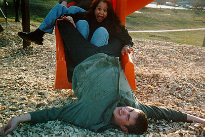Heres a picture of us sliding down a slide. Kenai even assumed a Jesus